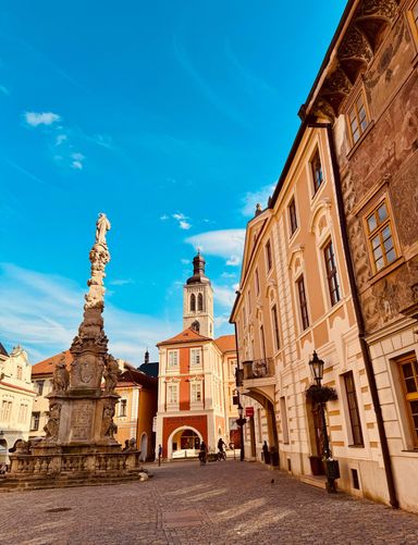 Kutná Hora (Kuttenberg) ist eine Stadt im Herzen Böhmens. Ihr historisches Zentrum steht seit 1995 auf der Liste des Weltkulturerbes. Sie ist auch für weitere Sehenswürdigkeiten, wie z.B. die Kathedrale der Heiligen Barbara und das Sedlec-Ossarium, auch bekannt als „Knochenkirche“, bekannt.